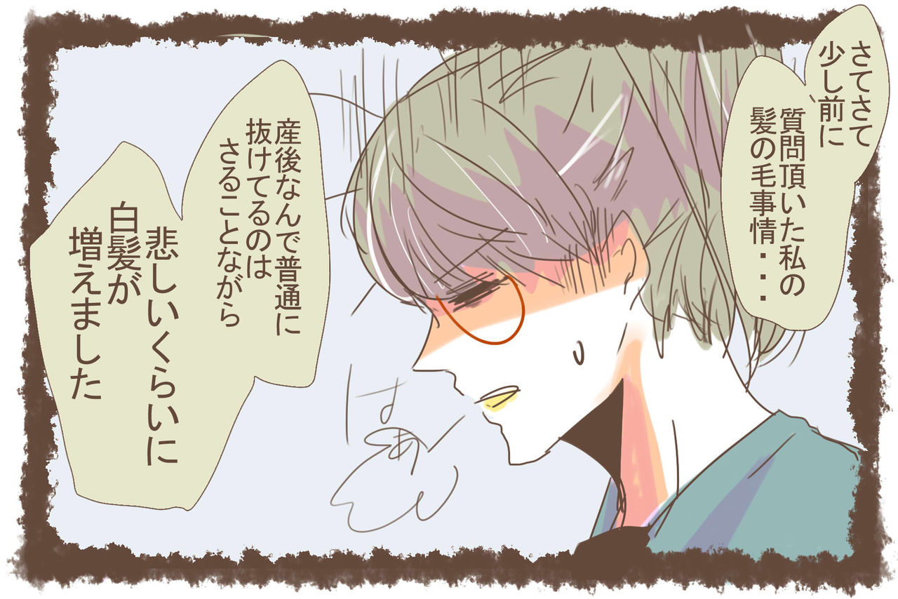 3人目だけ、抜け毛はそこまでではなかったけど、異常に白髪が増えました。