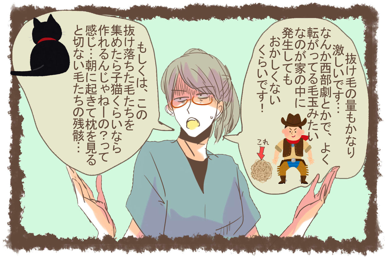 お風呂上がりに、排水溝に毛玉のダンゴが出来てるし、掃除機かけ終わって振り向くと既に毛が落ちてますΣ(´□`;)