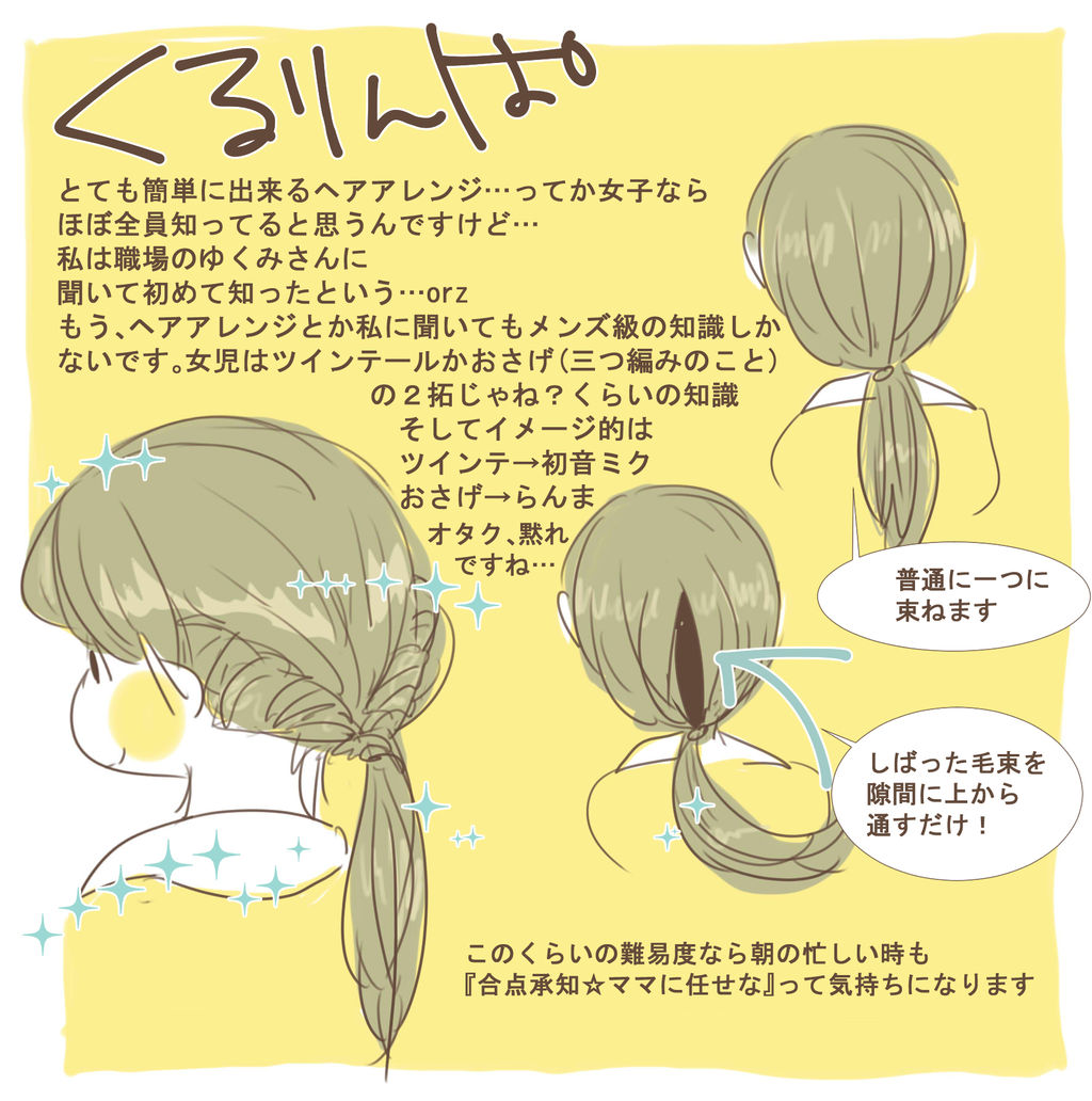 くるりんぱおさげ、是非まねさせて頂きます❗オッサンの美容スキルではポニテかツインテールの二択しかないので非常に助かります(*≧∀≦*)w