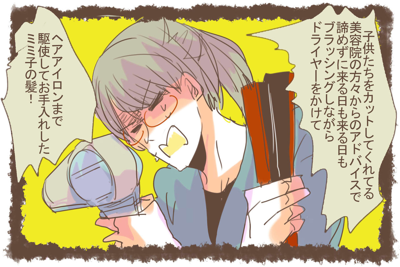 長女天パ混じりで放っておくと毛先が左右非対称な縦巻きロールになるので、学校時代は毎朝アイロンで伸ばしてましたね~