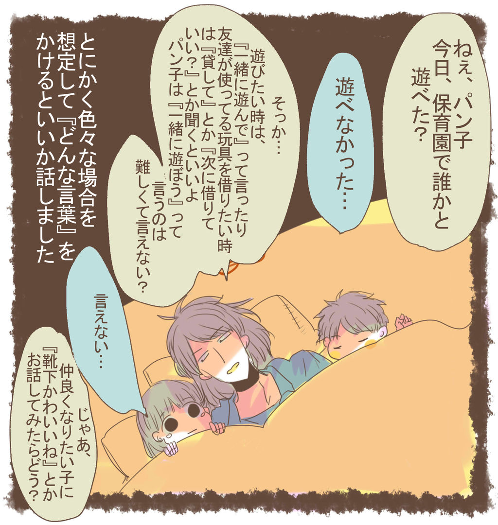 (ウチだったらちゃんと嫌だったり上手く言えなかった事をお母さんにお話できて偉いね、とか)