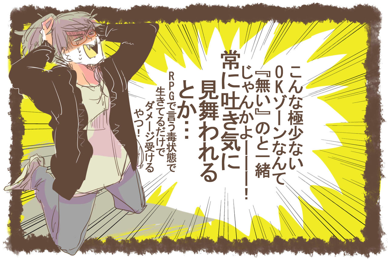 今回の、つわりの話、分かりすぎて泣きそうです。OKゾーンが存在するようで、存在しないような・・・・。