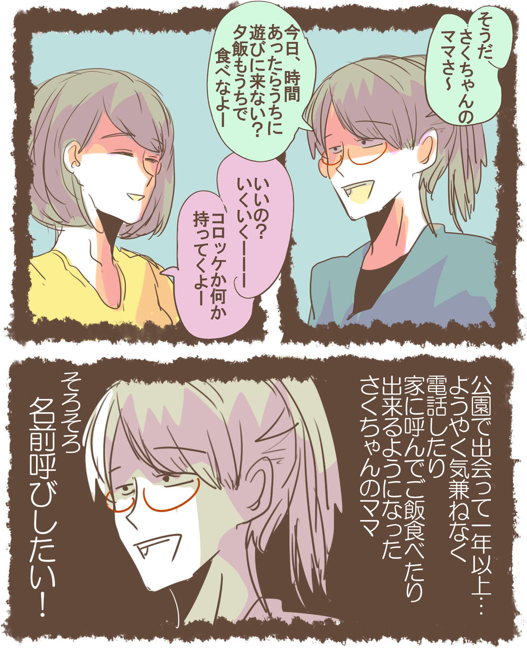 個人的に微妙というか、そう呼ぶと「うひょーママ友っぽーい!」って妙にソワソワしちゃうんで…。