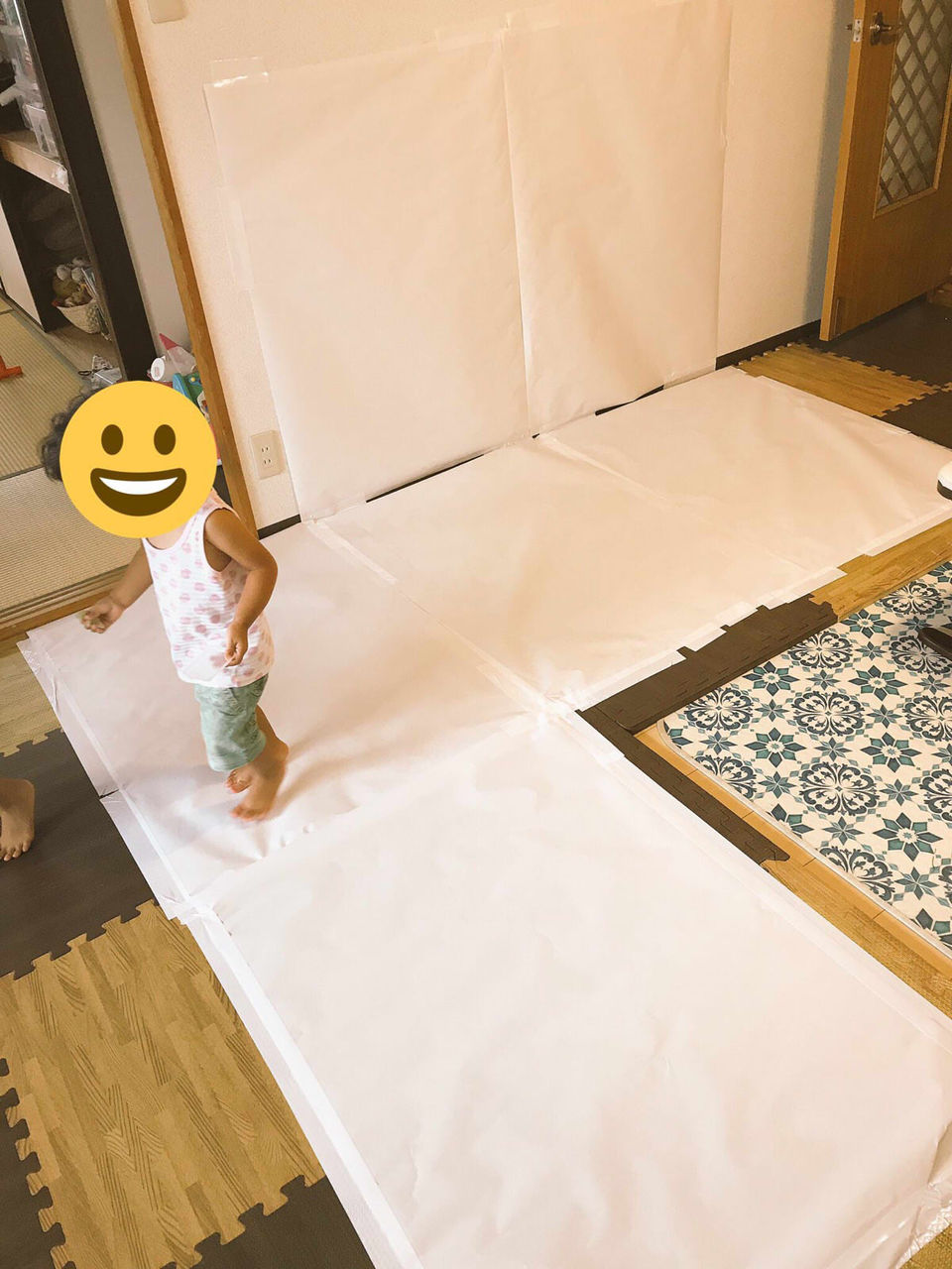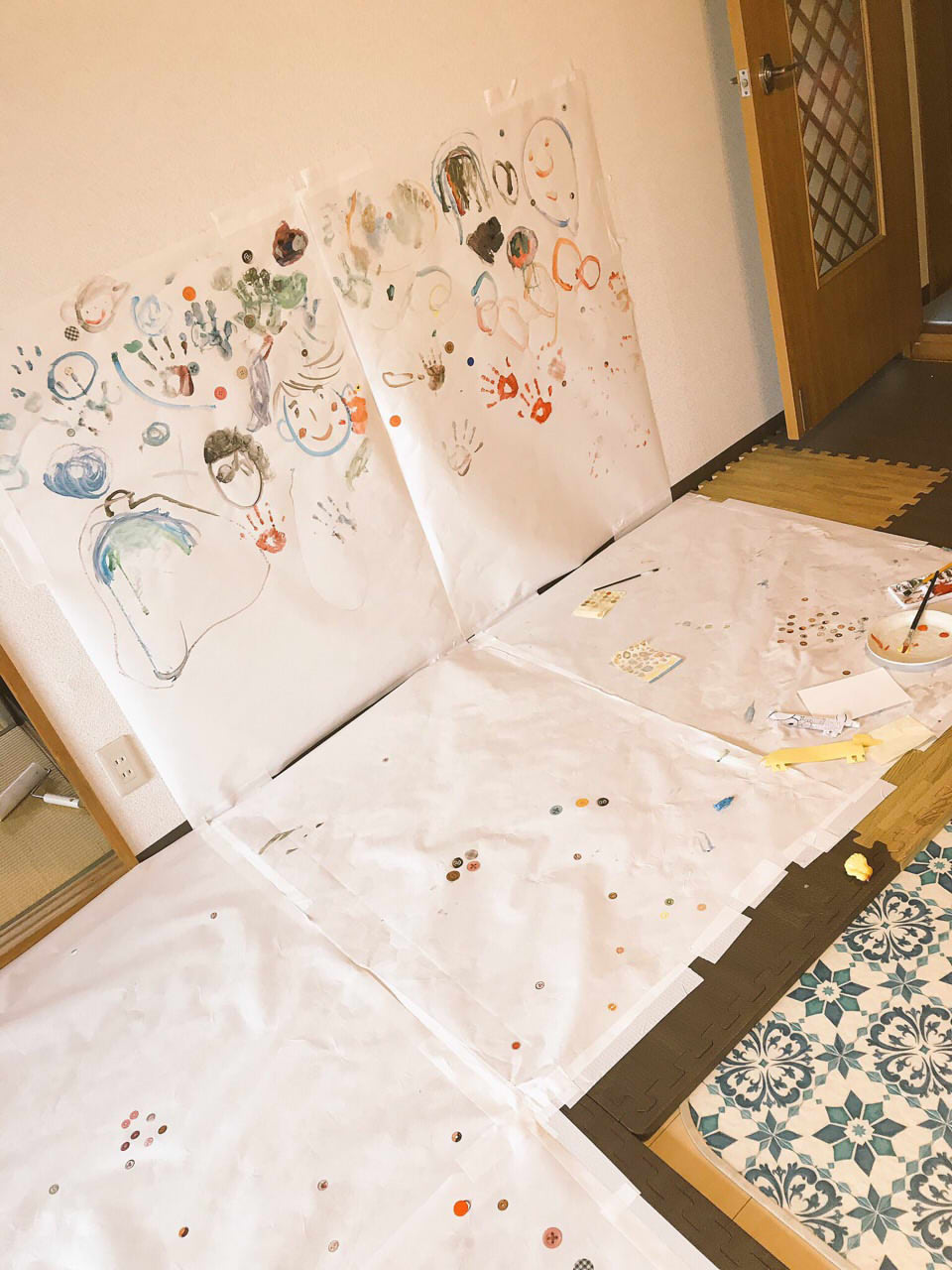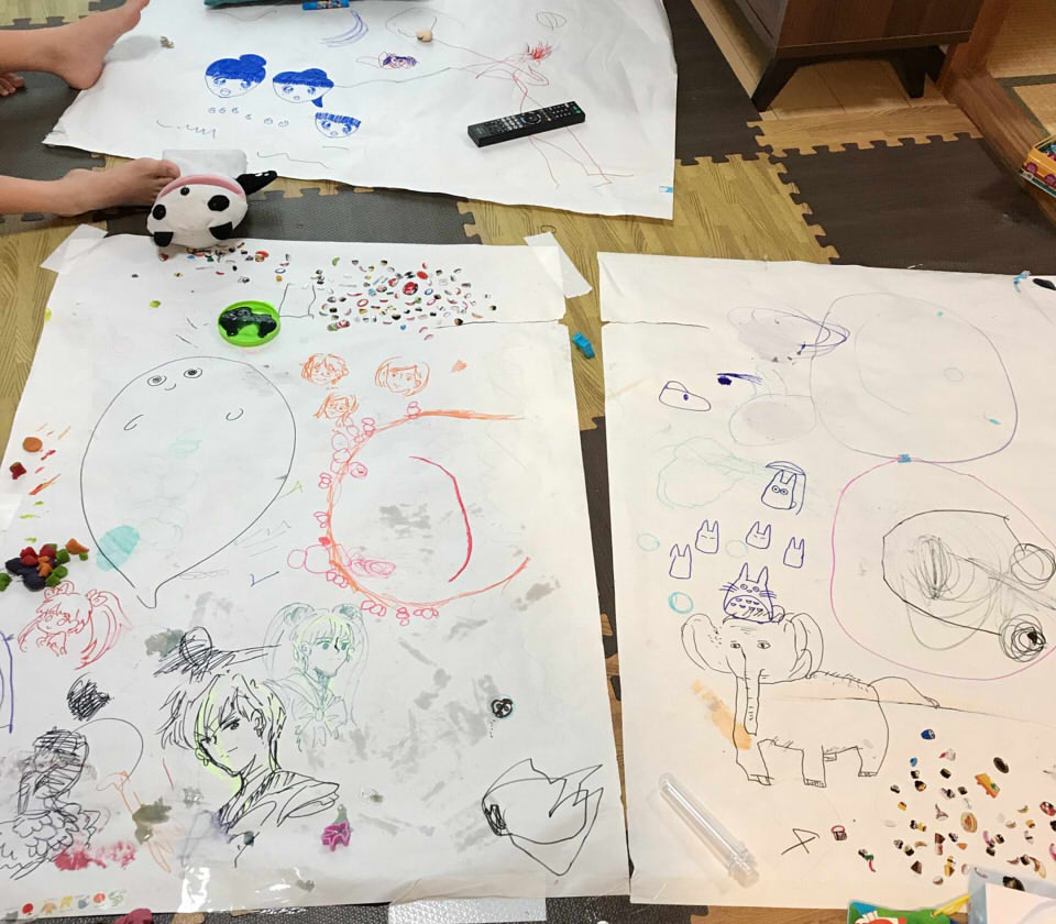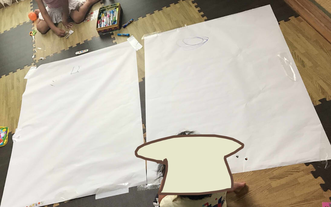 模造紙を床や壁に貼ってお絵かき楽しそうですね!是非真似したいと思います(*´ω`*)