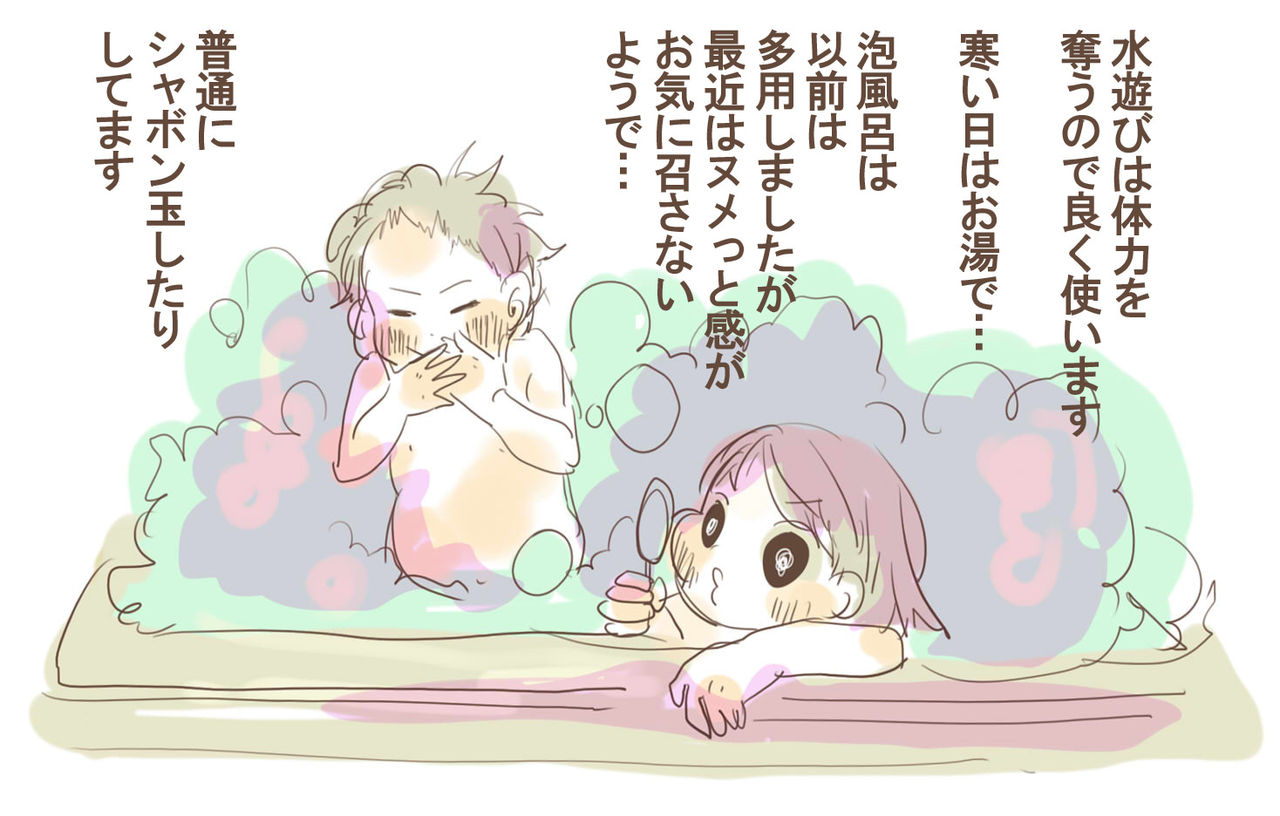 そしてお風呂でシャボン玉、ペットボトル内を延々に溜めては捨てるのコースで体力を奪う。