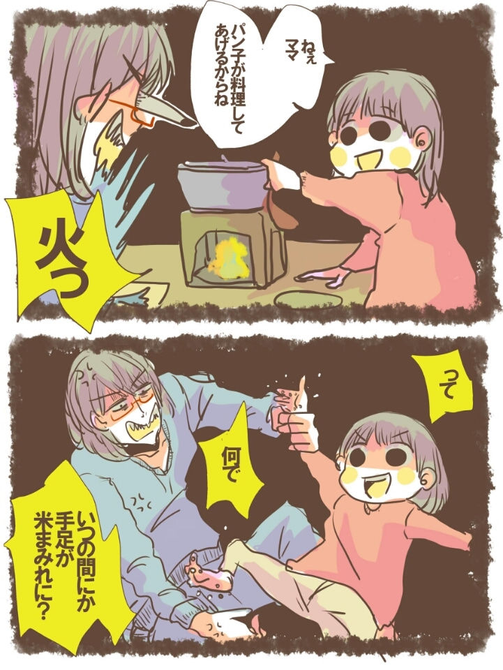 何故、手足が米まみれかと言うと旅行といういつもとは違う環境にテンションMAXのパン子が手掴みでご飯を食べ