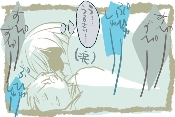 うちは夫のイビキがひどく、ペチペチたたくと寝ぼけて寄ってくるので、ひたすら耐えるしかありません(ノ_-。)