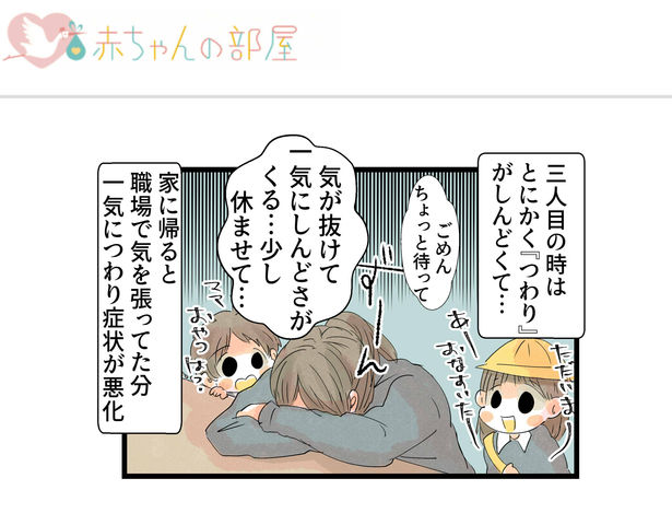 つわり中の帰宅後はなぜか本当にしんどくて…帰宅したら一気に疲れと気持ち悪さが…気を張ってるんでしょうね…仕事中は