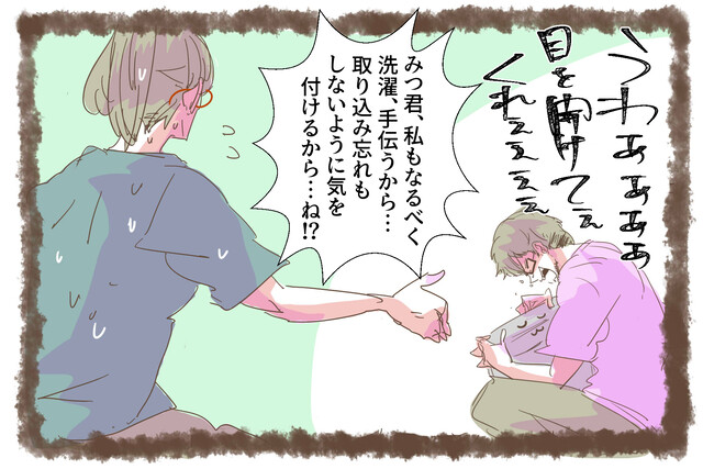 取り乱す夫、みつ君